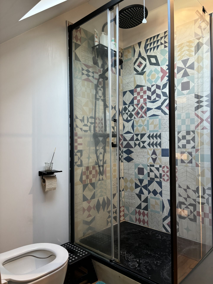Pour répondre à la demande à notre client, nous avons intégré une salle de bain de 3 m² dans des combles à aménager.